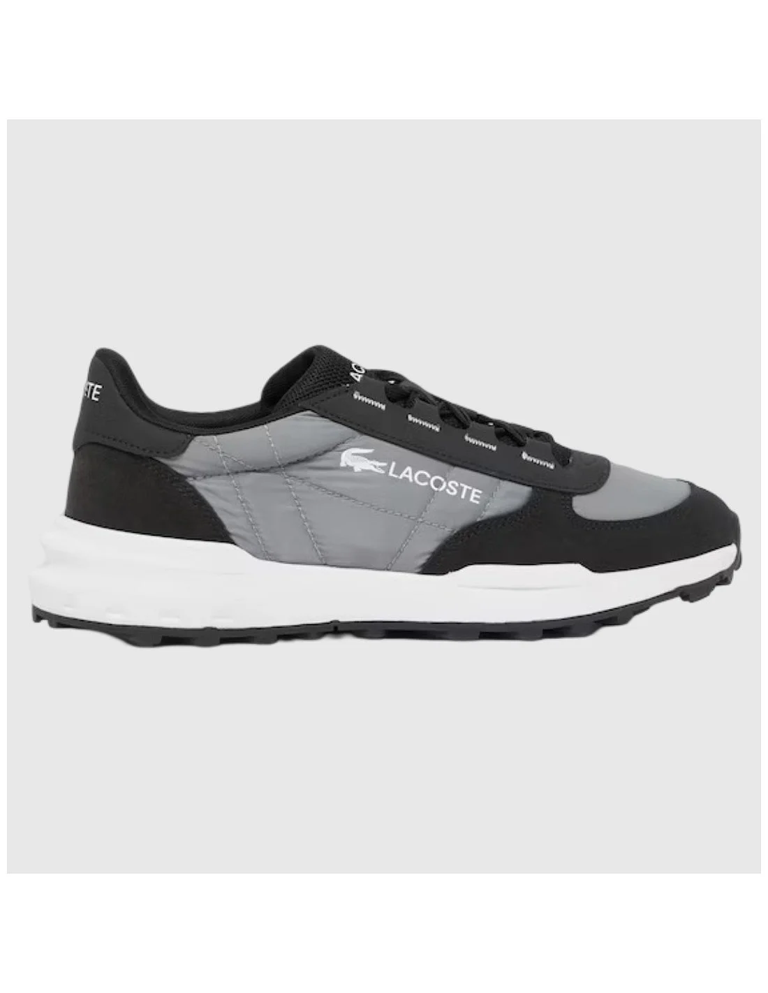 Zapatilla Lacoste de diseño contemporáneo con enfoque funcional. Presenta una estructura de nailon acolchado con refuerzos sintéticos y suela robusta de gran amortiguación. El logo del cocodrilo aparece en el lateral y el talón, aportando identidad a un modelo ideal para el día a día con estilo deportivo urbano.