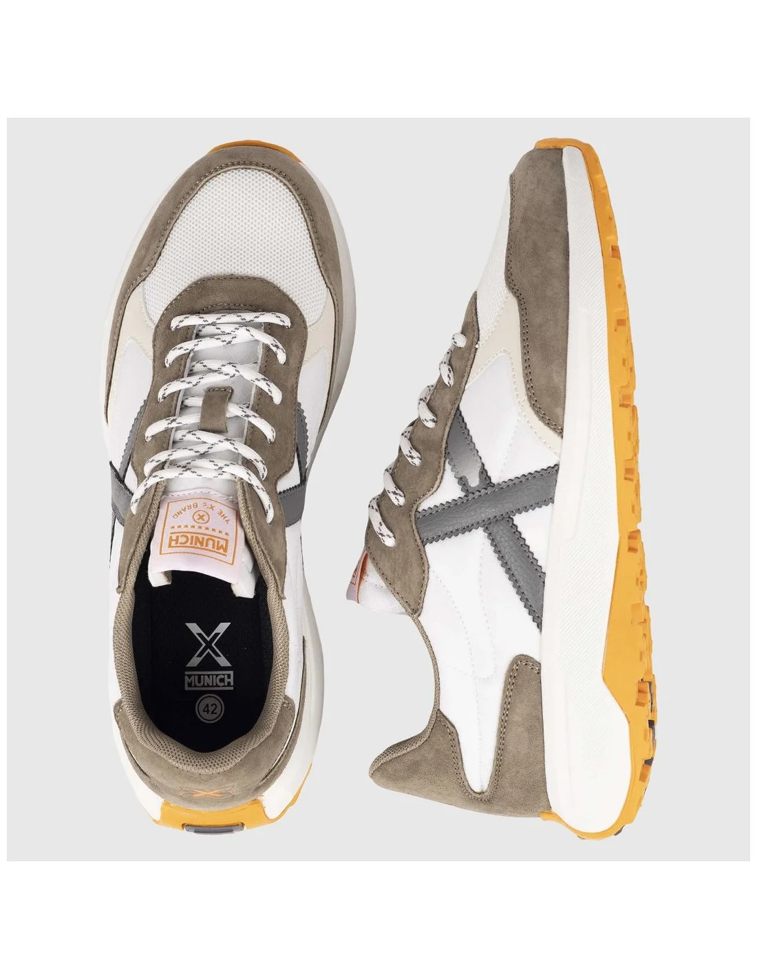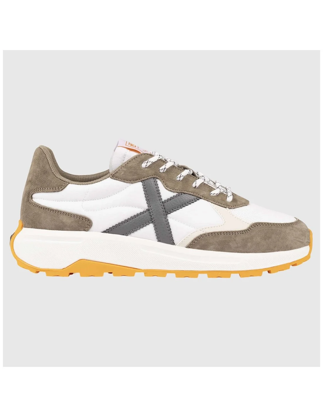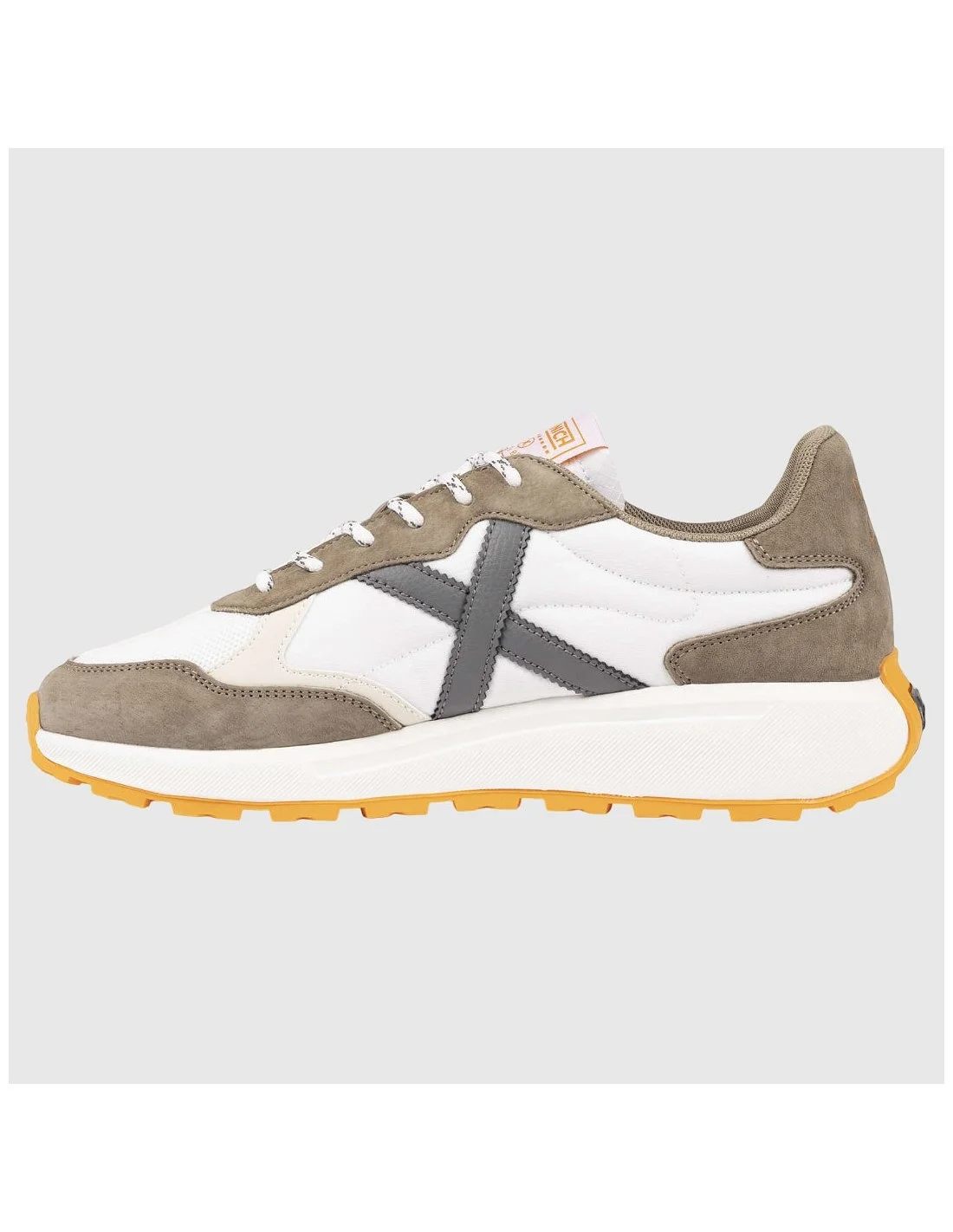 Zapatillas Munich BABEL 13 de diseño urbano y contemporáneo. Confeccionadas en combinación de materiales con acabado en malla transpirable y refuerzos superpuestos que aportan estructura y durabilidad. Presentan cierre de cordones, logotipo lateral en contraste y etiqueta distintiva en la lengüeta. Suela de gran volumen con relieve dentado que garantiza tracción y comodidad en cada paso. Un modelo versátil ideal para el día a día con un toque deportivo.