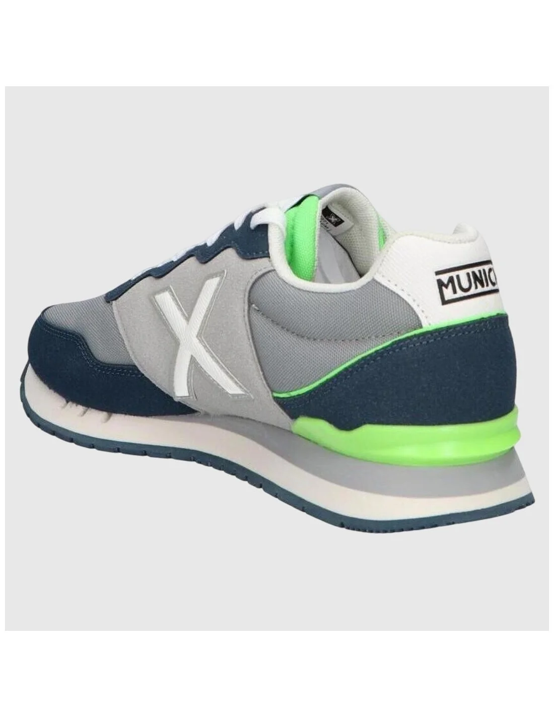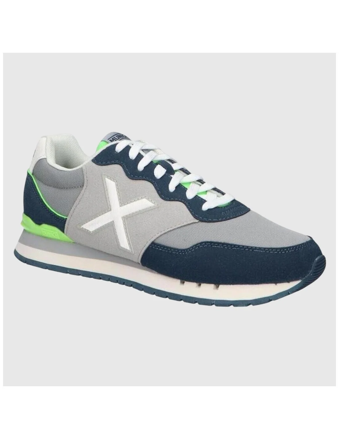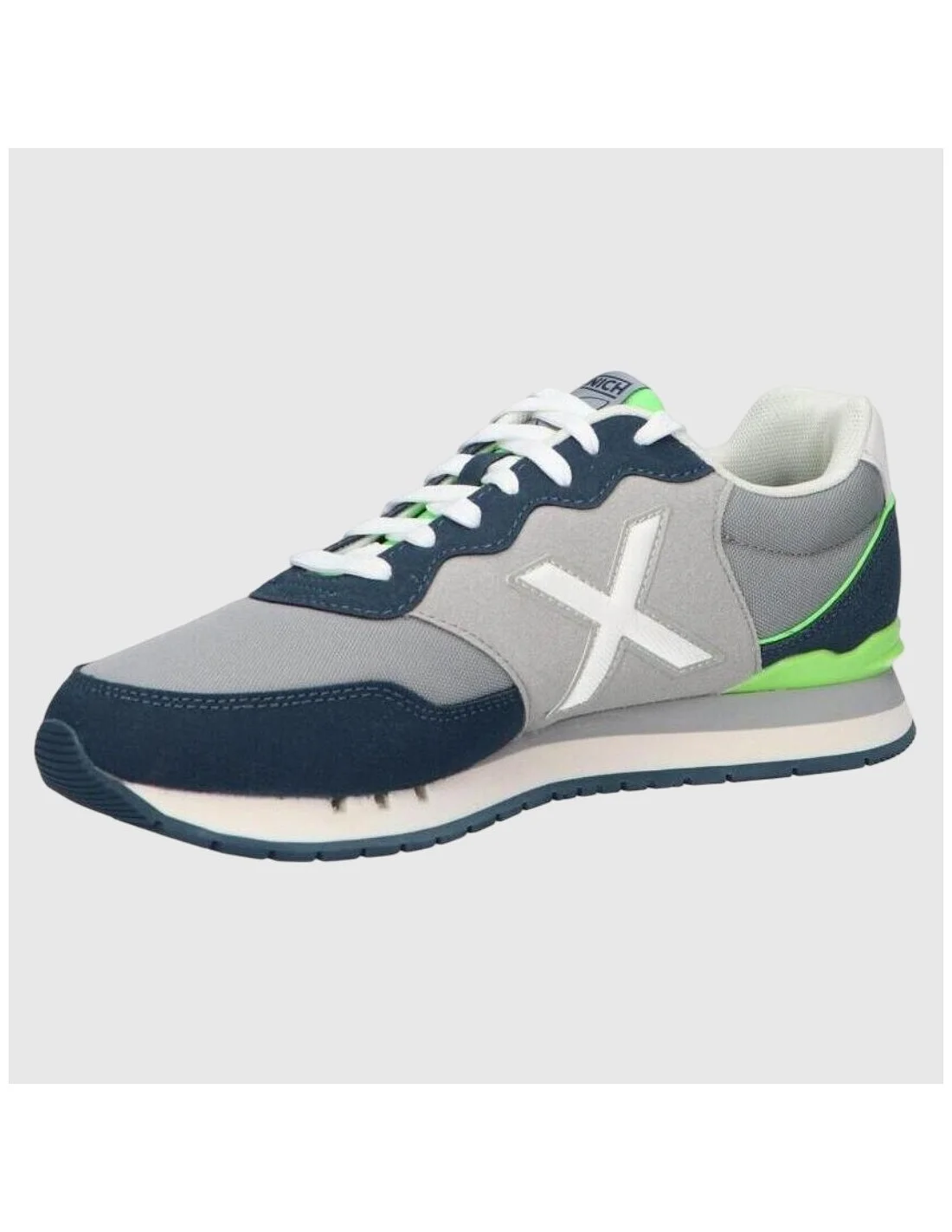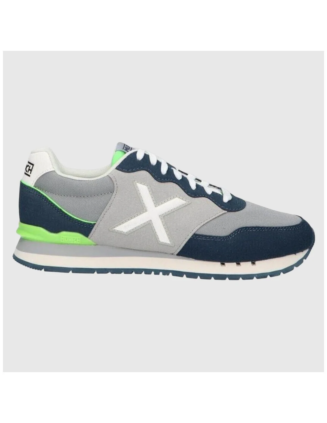 Las zapatillas Munich DASH 271 combinan estilo retro y funcionalidad para un look urbano y cómodo. Están confeccionadas con una mezcla de materiales sintéticos y textiles, ofreciendo transpirabilidad y ligereza. Su diseño en gris con detalles azul marino, blanco y acentos en verde flúor resalta a simple vista. Cuentan con suela de goma, logotipo lateral en forma de X y refuerzos acolchados. Ideales para un uso casual diario.