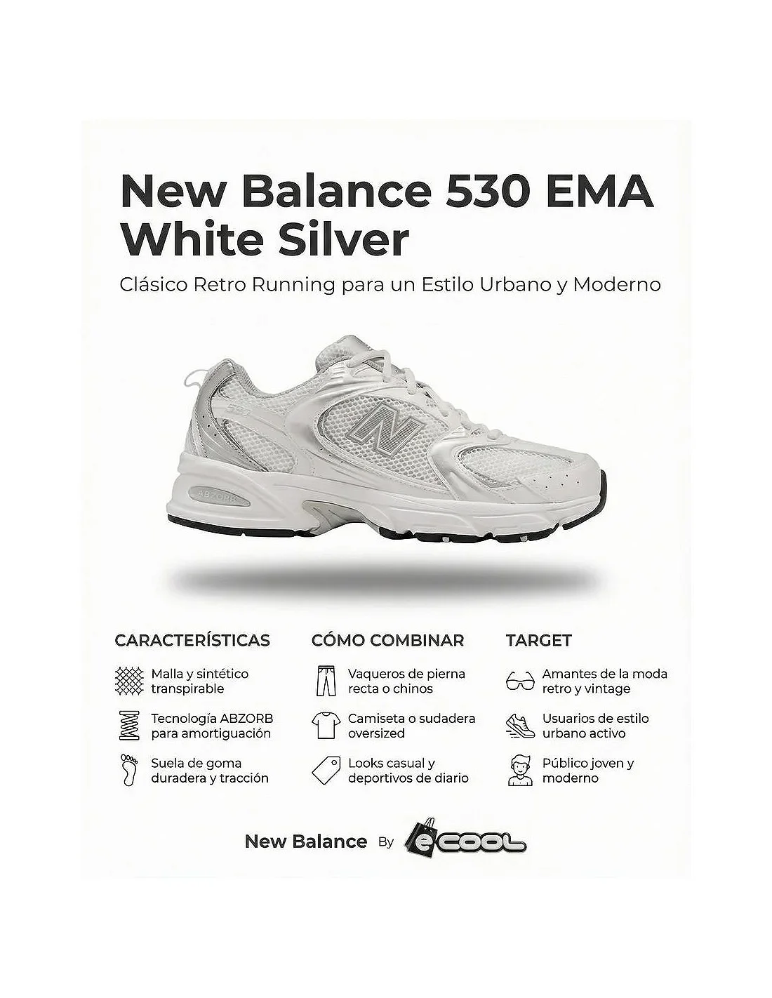 Las zapatillas New Balance MR530 combinan un diseño retro running con tecnología moderna. Incorporan amortiguación ABZORB que absorbe impactos y proporciona mayor confort en cada pisada. Su parte superior de malla y sintético permite transpirabilidad y ligereza, mientras que los detalles en capas y el logo lateral aportan un estilo deportivo clásico. Ideales para uso diario o looks urbanos activos.
