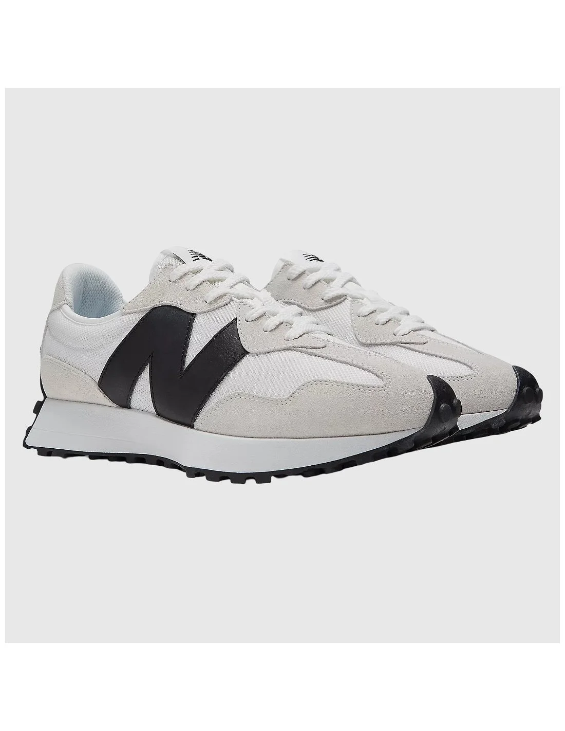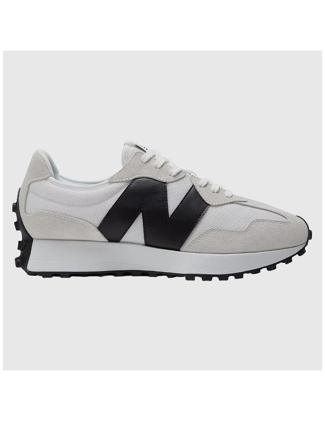 Las zapatillas New Balance 327 combinan estilo retro y funcionalidad moderna. Confeccionadas en textil con refuerzos de ante, ofrecen un ajuste cómodo y transpirable. Su diseño en blanco con detalles en gris y el icónico logotipo negro aportan un look urbano distintivo. La suela con tacos brinda tracción, ideal para uso casual o deportivo.