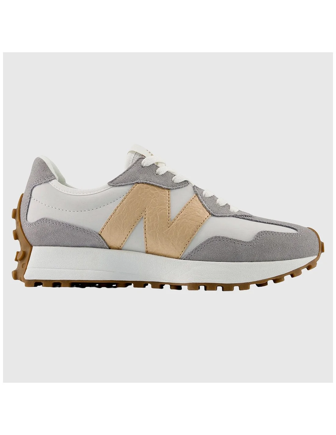 Las zapatillas New Balance W327 reinventan el estilo retro running con un enfoque moderno. Su diseño presenta una silueta estilizada con mezcla de materiales como ante y malla, ofreciendo ligereza y transpirabilidad. La suela dentada y el logo sobredimensionado aportan personalidad y tracción. Una opción versátil para looks urbanos con influencia vintage.