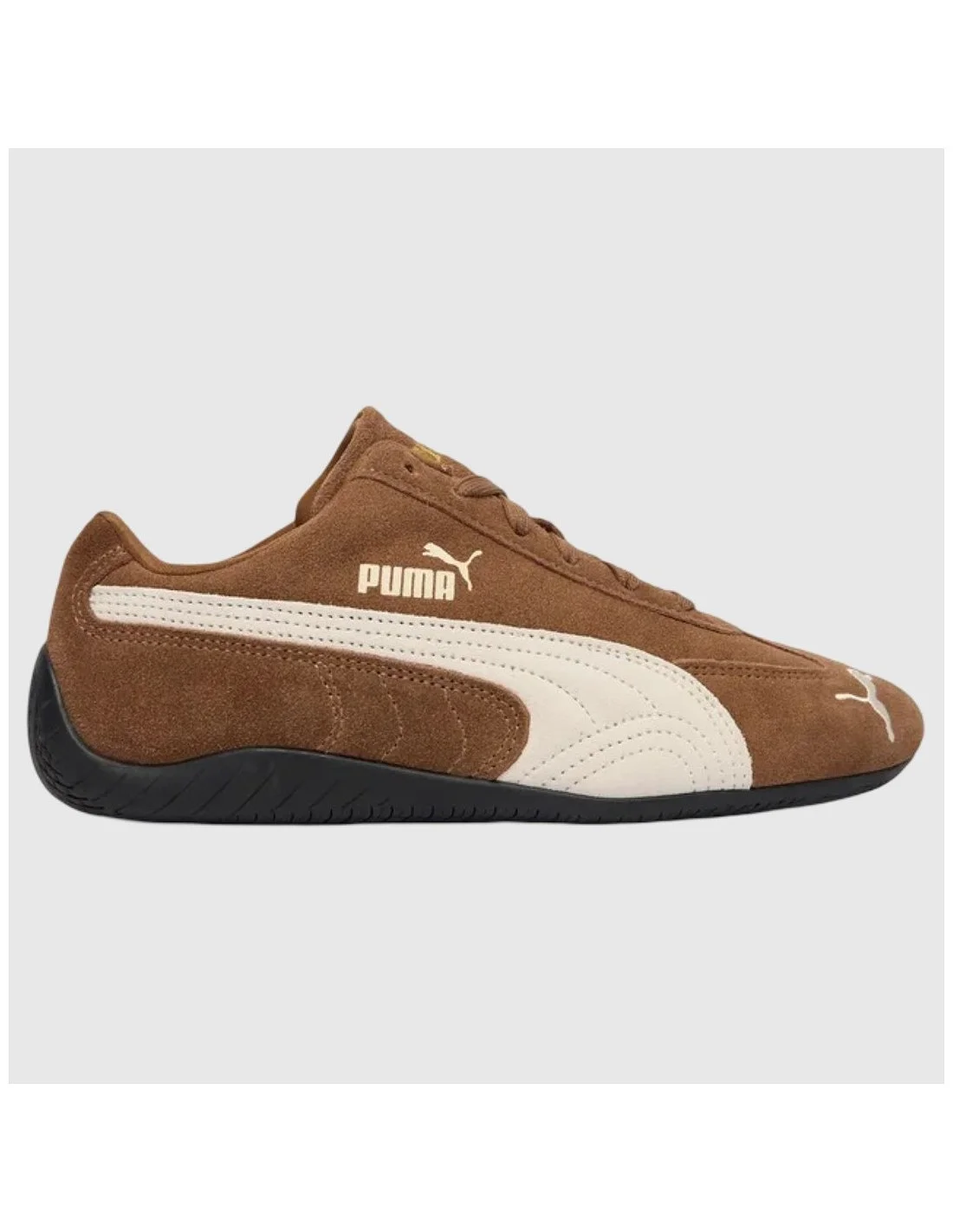 Zapatillas Puma de perfil bajo confeccionadas en material tipo ante, con cierre de cordones y diseño inspirado en el automovilismo. Presentan el icónico Formstrip lateral en contraste y detalles de logotipo en el lateral, la lengüeta y el talón. La suela flexible de goma proporciona tracción y comodidad, convirtiéndolas en una opción ideal para un estilo urbano con carácter deportivo.