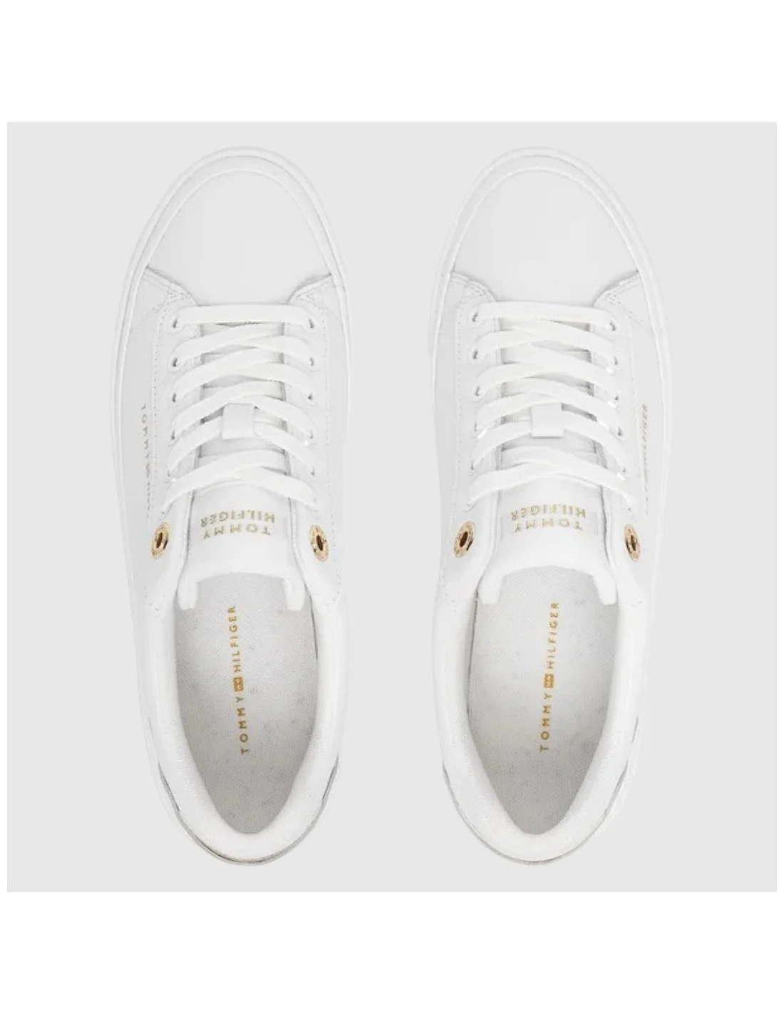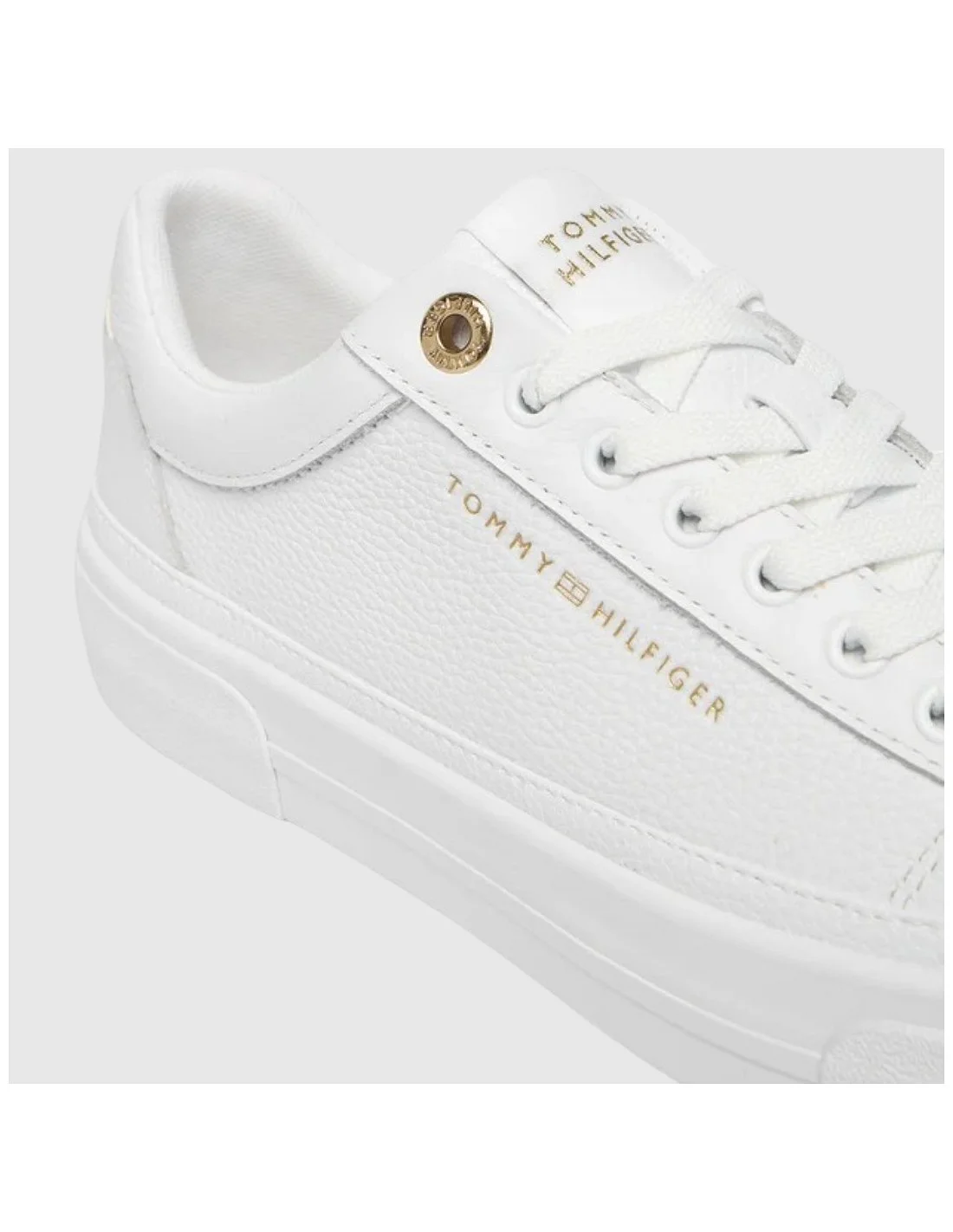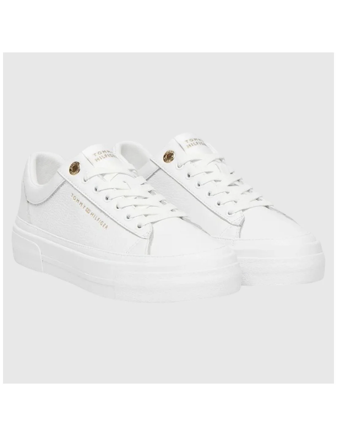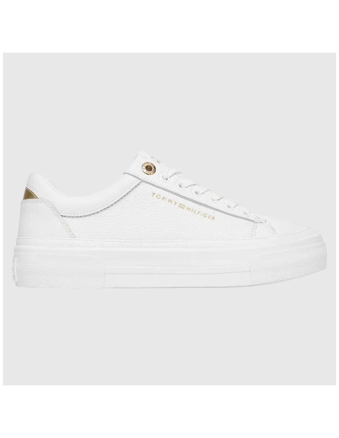Las zapatillas Tommy Hilfiger destacan por su diseño minimalista con acabados metálicos que aportan un toque sofisticado. Confeccionadas en material sintético tipo piel, cuentan con suela de plataforma, cierre con cordones y logo lateral. Ideales para looks casuales con un aire moderno y femenino.
