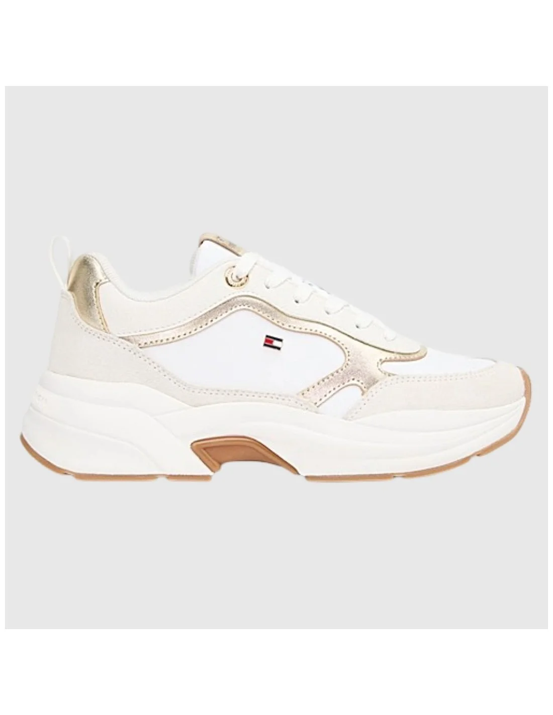 Estas zapatillas Tommy Hilfiger combinan estilo deportivo con detalles modernos y llamativos. Presentan una silueta chunky con suela elevada para mayor impacto visual y confort. Confeccionadas en una mezcla de malla, ante y material sintético, cuentan con cierre de cordones, detalles metálicos y el distintivo logo de la marca. Ideales para un look urbano con actitud.