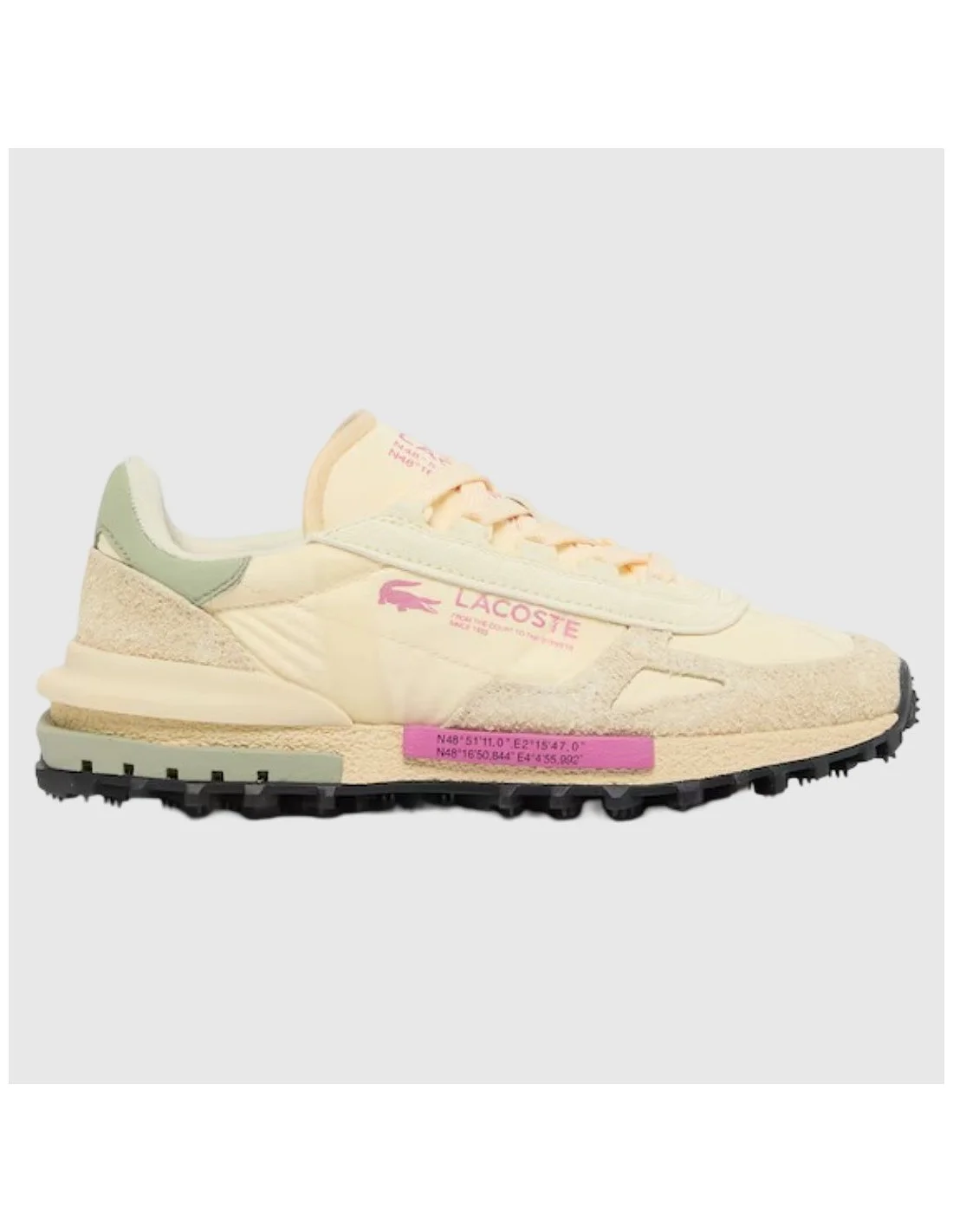 Zapatilla Lacoste de inspiración trail con estética urbana y detalles técnicos. Combina paneles de nailon acolchado con refuerzos en ante texturizado, y presenta un diseño robusto con suela de gran tracción. Incluye coordenadas estampadas y el icónico cocodrilo en contraste, aportando un toque distintivo. Perfecta para un estilo versátil entre lo outdoor y lo contemporáneo.